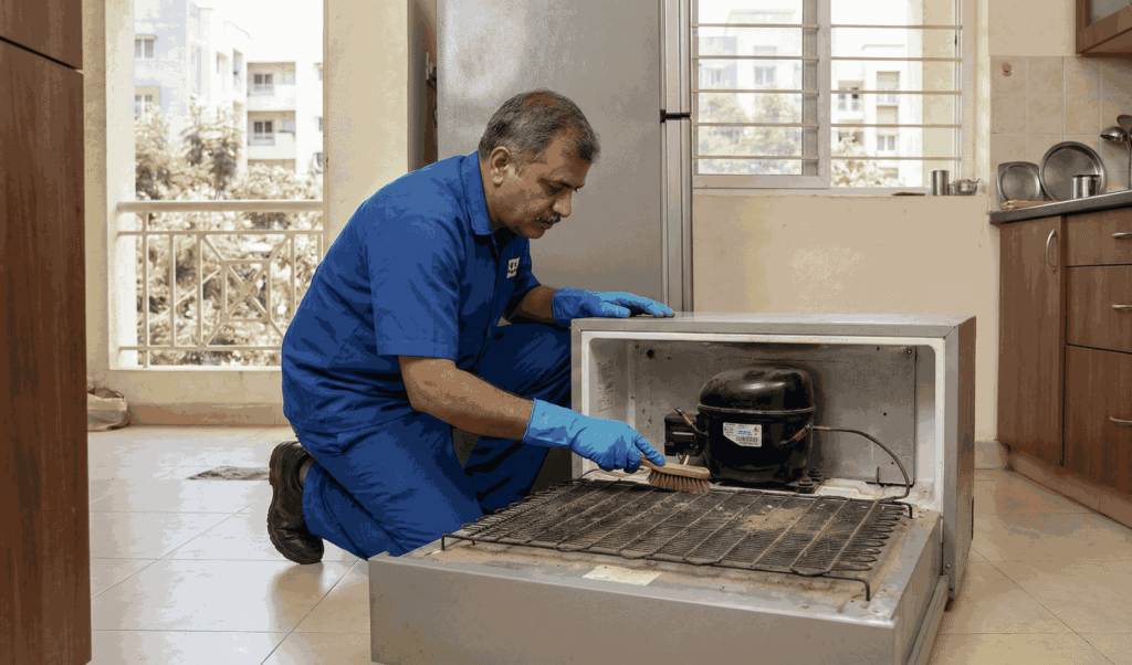 This blog explains why condenser coil cleaning is critical, how Hyderabad’s climate affects it, common symptoms, and what you should do to protect your fridge.